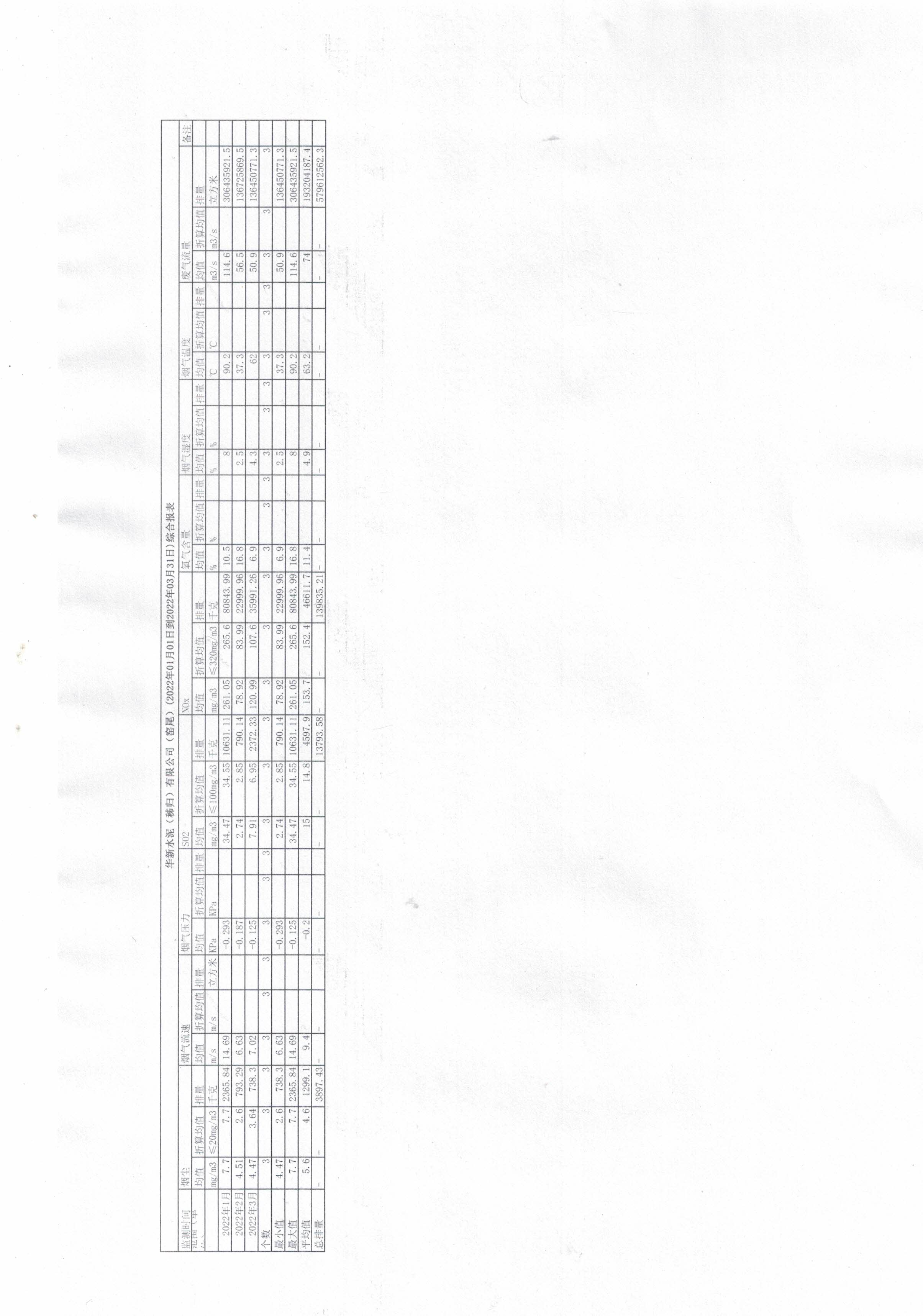 9.華新水泥(秭歸)有限公司-窯尾(2022年01月01日到2022年03月31日)綜合報(bào)表